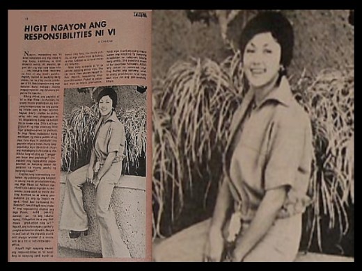 Hindi kaila kasi sa mga ito na maraming pumapasok sa movie making business na sa unang produksiyon pa lang ay bagsak na agad. Hindi kasi kumuwela ito. Bagama’t nakakahigit mang malaki ang nagsasabing ki-click ang Mga Rosas, kahit paano’y naroon pa rin ang katanungang, “Mag-click kaya ang first movie productions nina Vi!” Ngunit ang katanungang ganito’y pangkaraniwan sa showbiz. People in and out of the showbiz world will always wonder if a movie will be a hit or not in the box office. Kaya’t higit ngayong marahil ang responsibilities ni Vi hindi lang sa kanyang sarili kungdi sa kanya ring fans, the movie public, sa mga mahal niya sa buhay, sa mga kaibigan, at sa local showbiz industry. Wala nang hangarin si Vi sa pagiging aktres n’ya. She has more than proven herself in this. Ngunit, masasabing mayroon din naman. Pagka’t sa pagpasok niya sa movie productions, hindi niya dapat payagang mabawasan ang ningning ng kanyang nakakasilaw na katayuan bilang isang artista. She owes this much to her countless followers. At bilang aktres ay nararapat niya ring ibuhos ang kanyang lahat sa unang produksiyon niya kung saan siya rin ang pangunahing bituin. – Cleo Cruz, Darna, No. 304, 30 Aug 1974