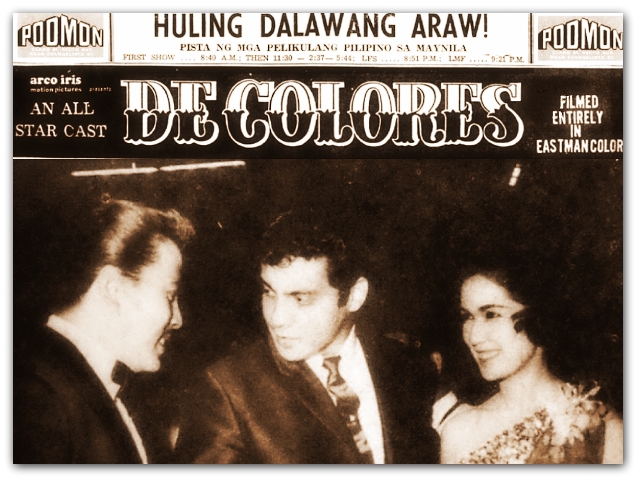 1. Just for clarification…Susan Roces and Fernando Poe, Jr. were not in the movie De Colores. The above photo shows Joseph Estrada (who top-billed in the said movie with Amalia Fuentes and many others) welcoming the couple at the premiere night of the said movie.
